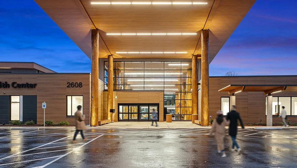 East entrance (main entrance) of the Lummi Nation Healthcare & Dental Clinic | Bellingham, WA